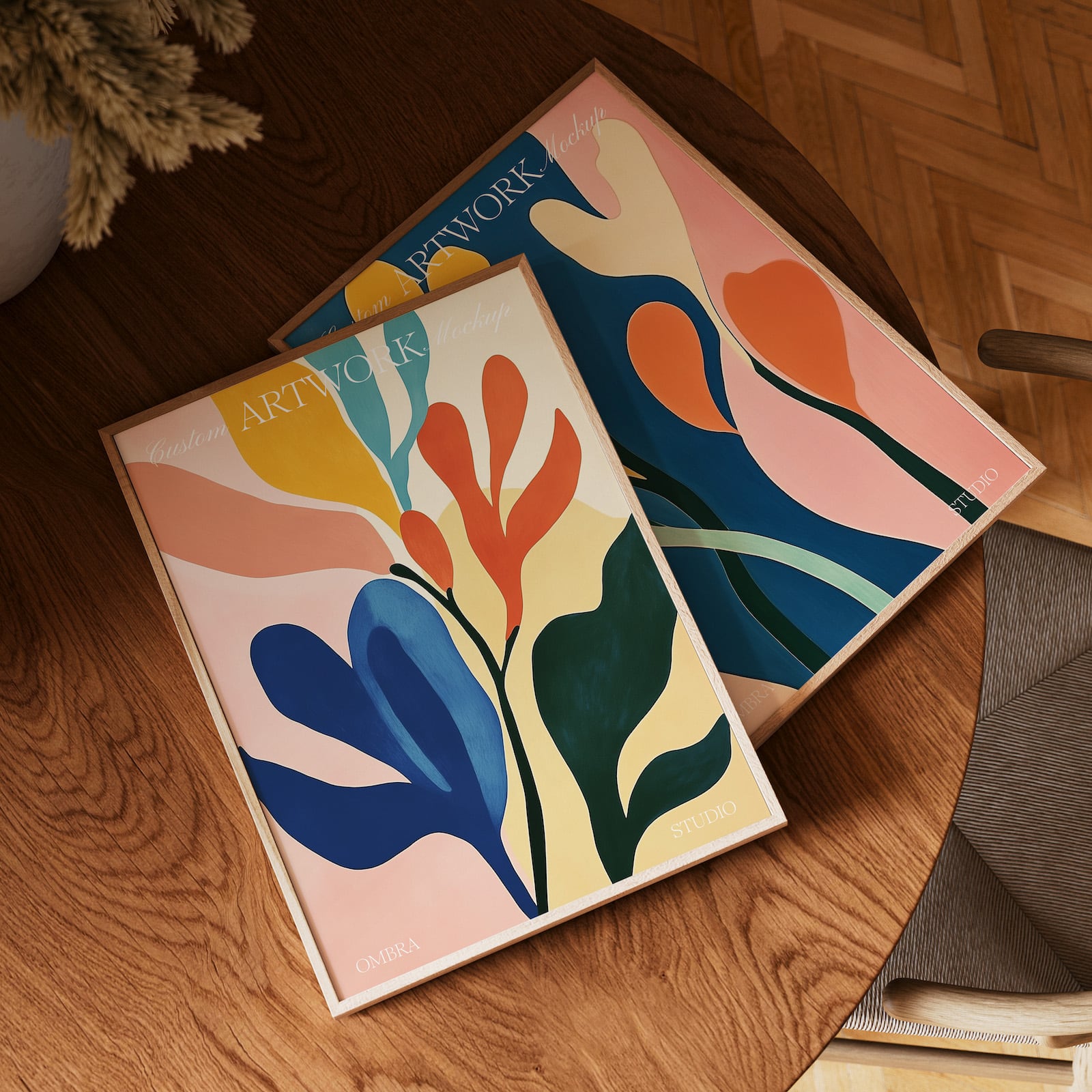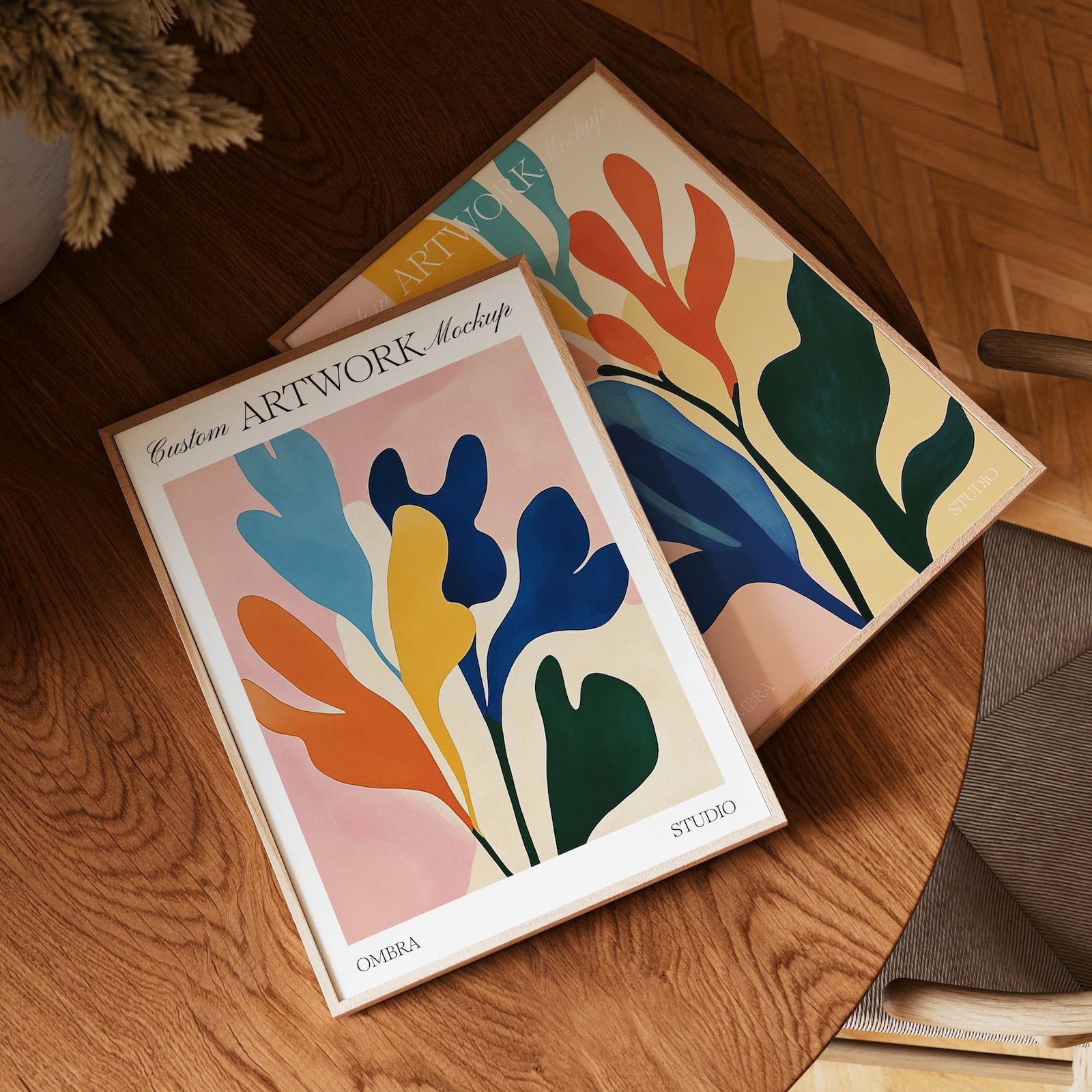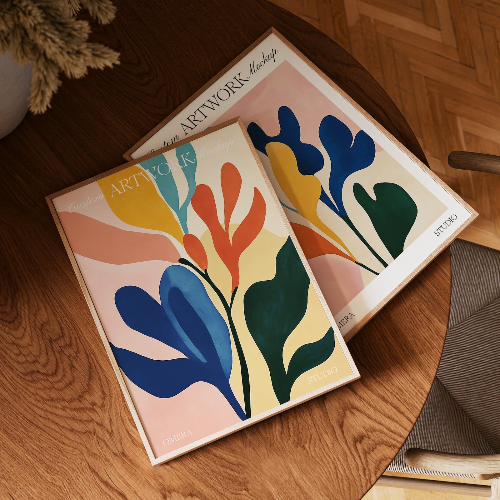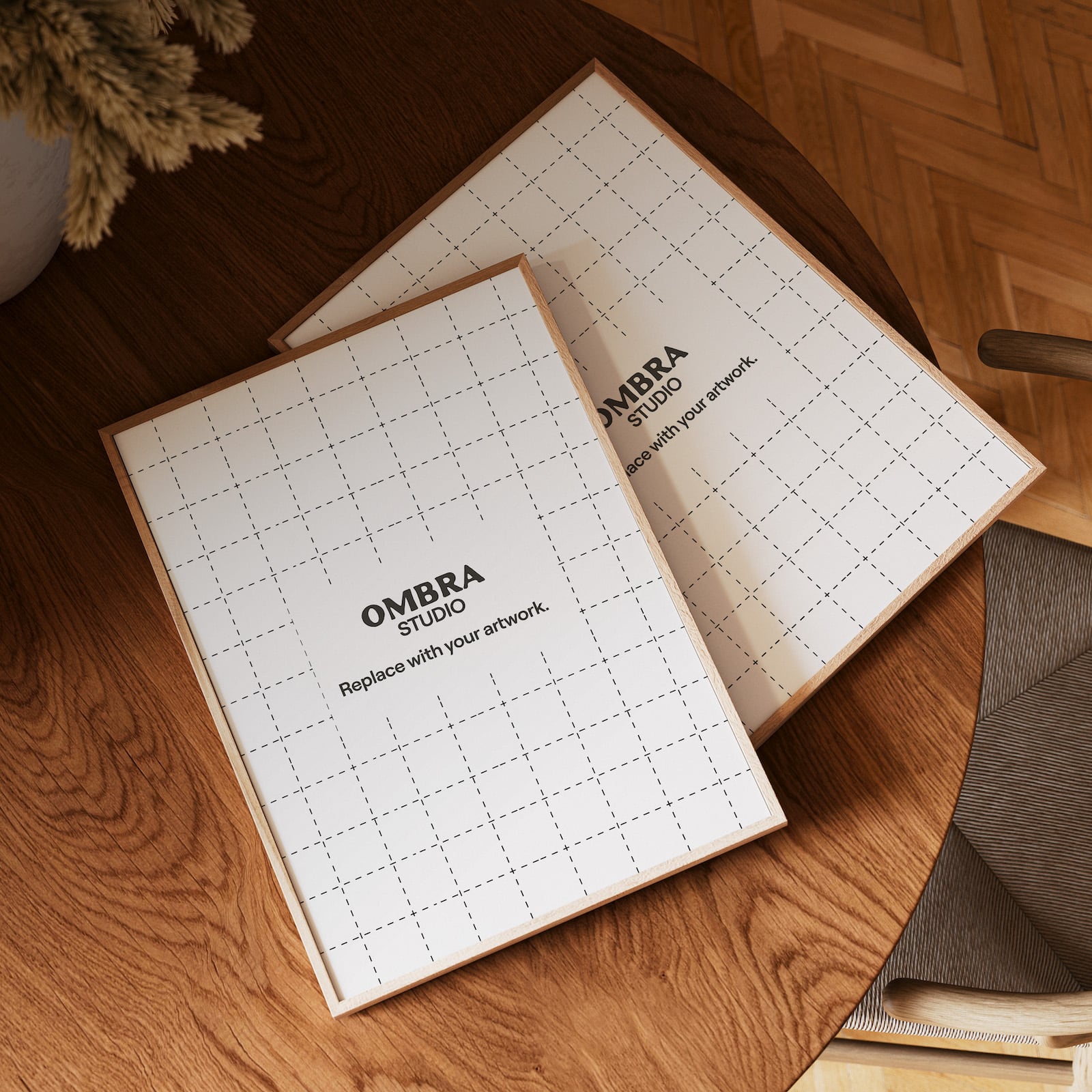 SKU ombra-023 Category Vertical Frame Mockups Tags Multiple frames, 2 Frames, Close up, Wood frame, Top view