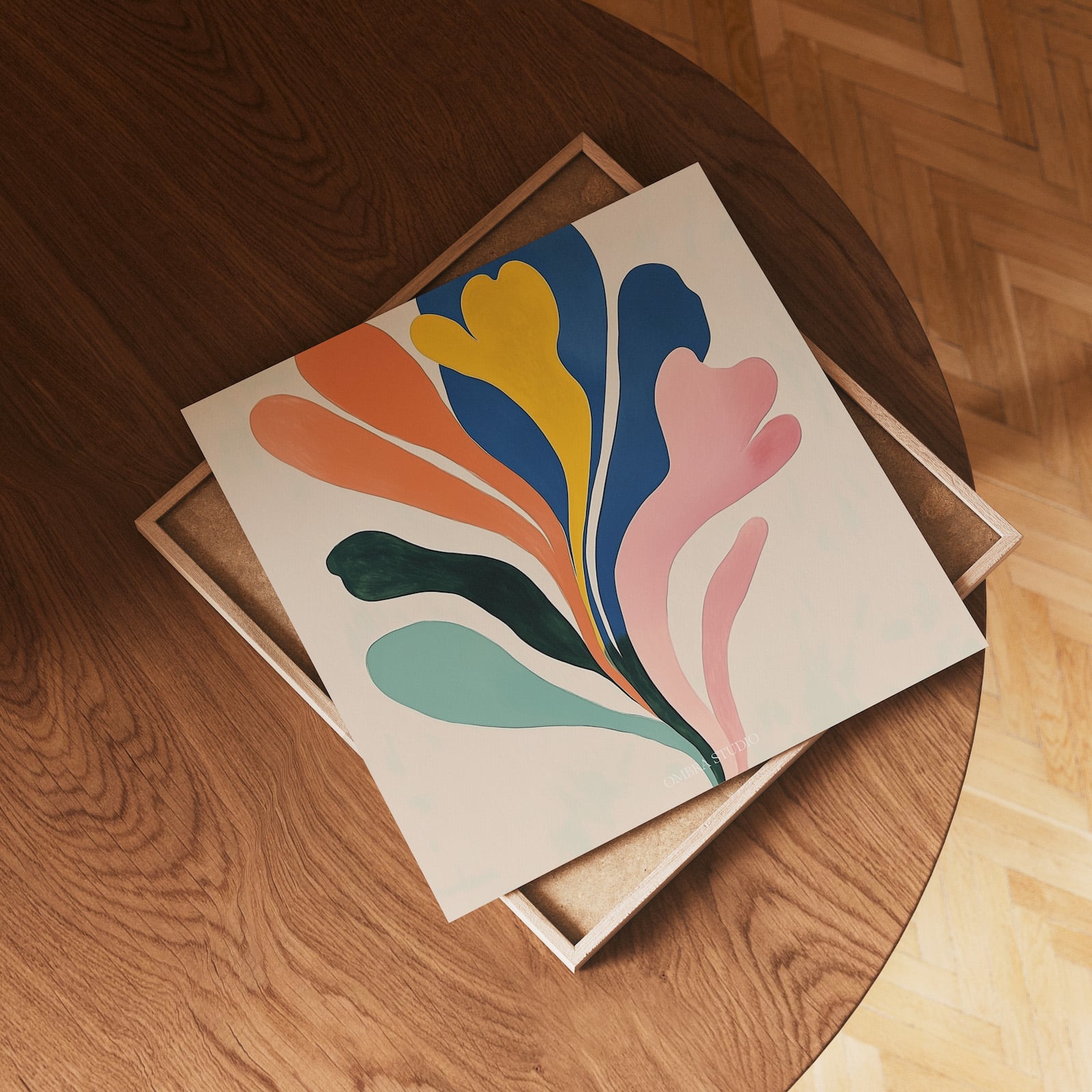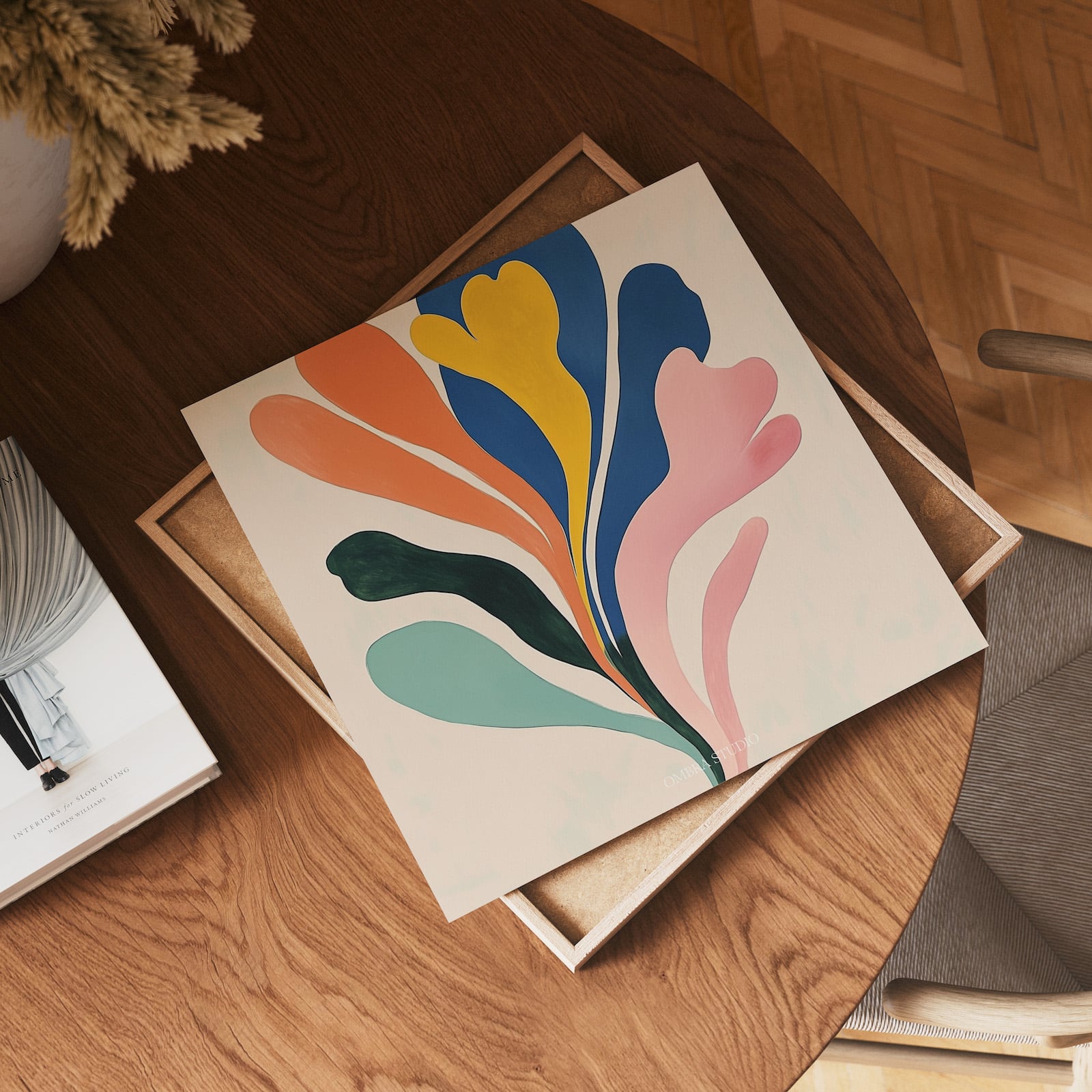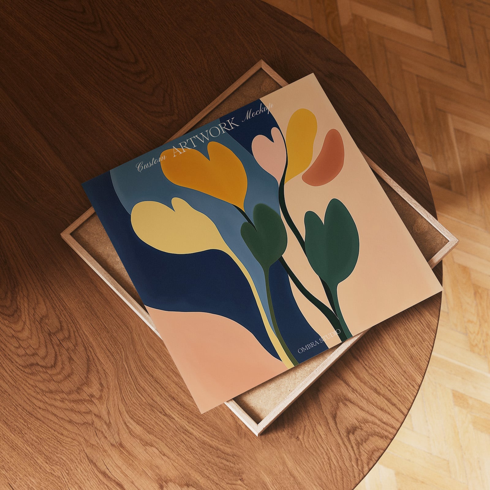 Our close-up square frame mockup is a bestseller, offering a sleek and minimal design with natural tones and soft shadows—perfect for showcasing your prints or artwork. This download includes 2 versions of the mockup; one with props on the table and one that is more minimal with no props.