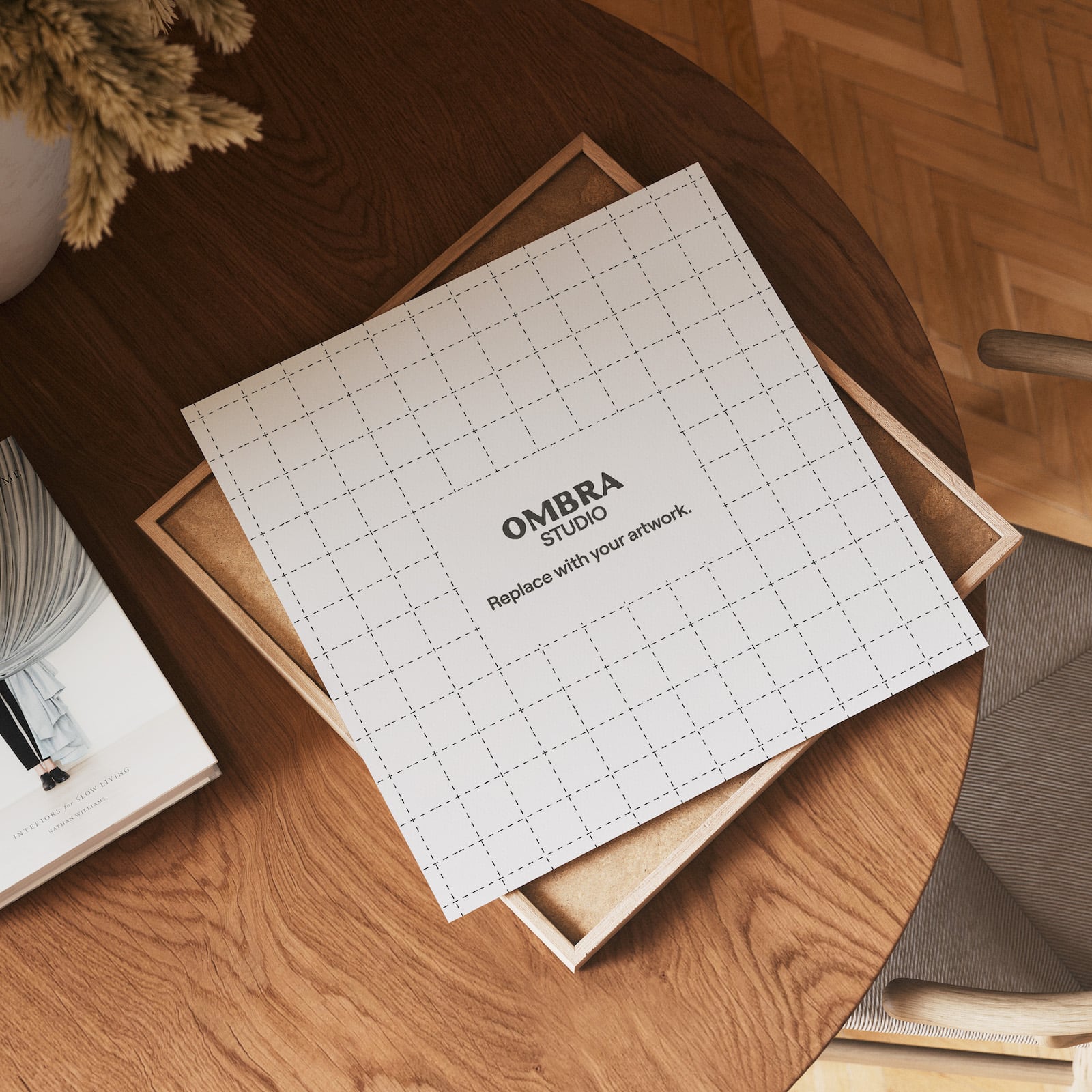 SKU ombra-008 Category Square Frame Mockups Tags Top view, Close up, Wood frame