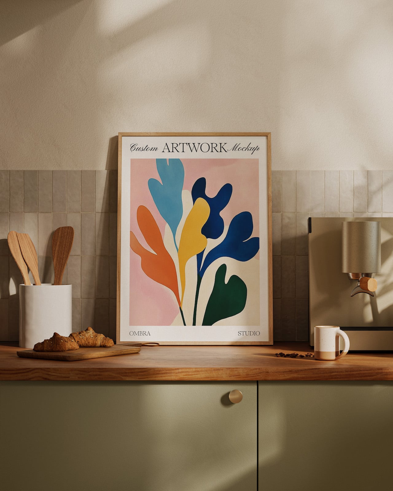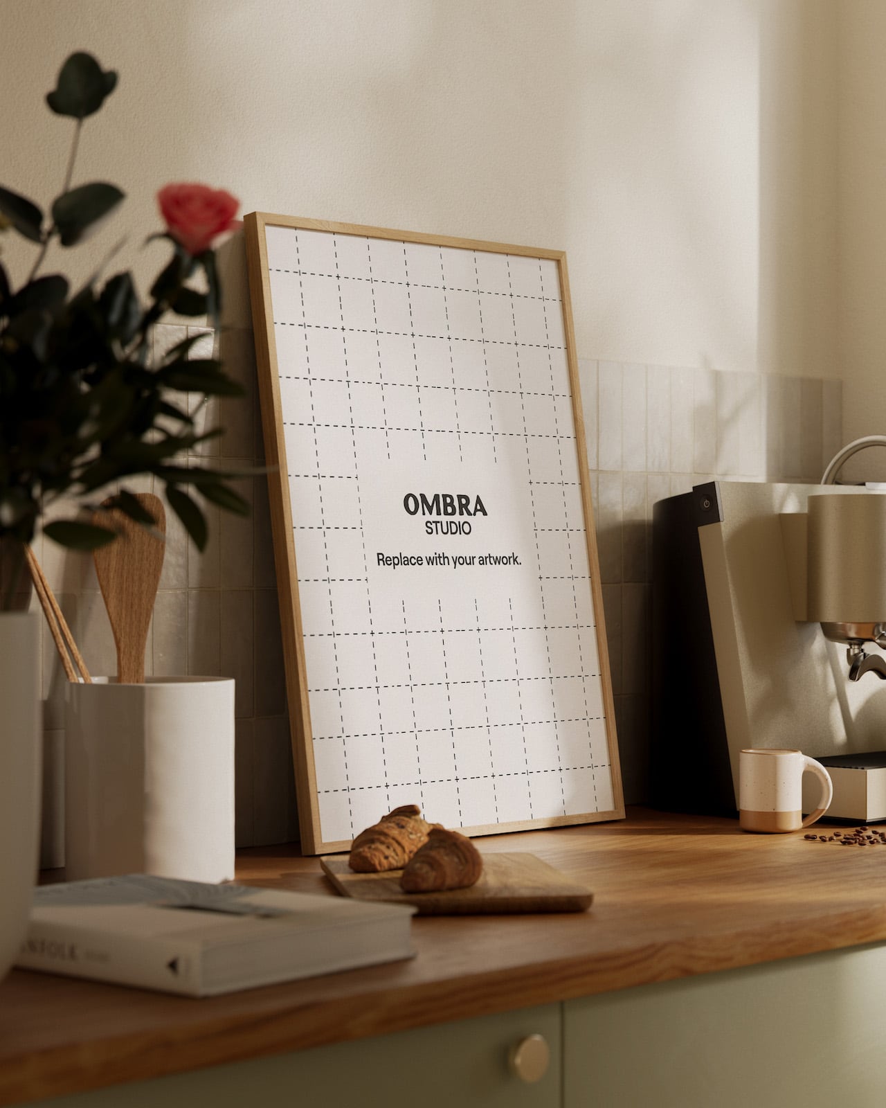SKU ombra-025 Category Vertical Frame Mockups Tags Close up, Wood frame, Kitchen